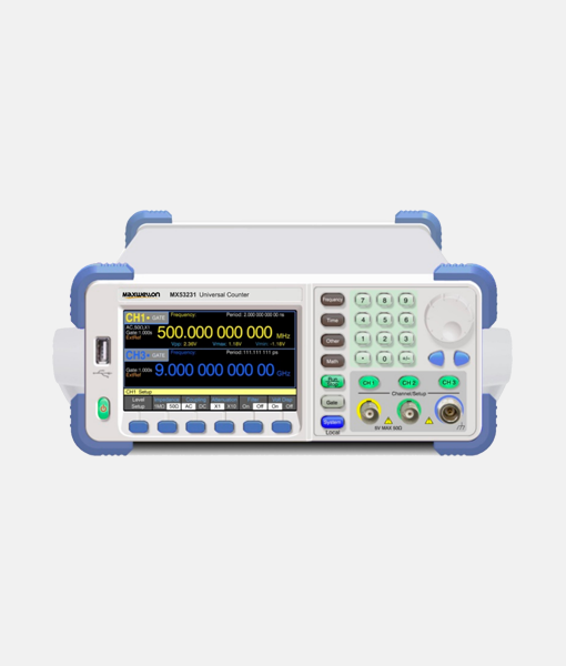 The Maxwellon MX53231 Series Universal Counter is a high-precision frequency and time measurement instrument. Featuring a frequency measurement resolution of 12 digits/second and a single-shot time resolution of 50 ps, it is driven by a high-performance internal microcontroller.